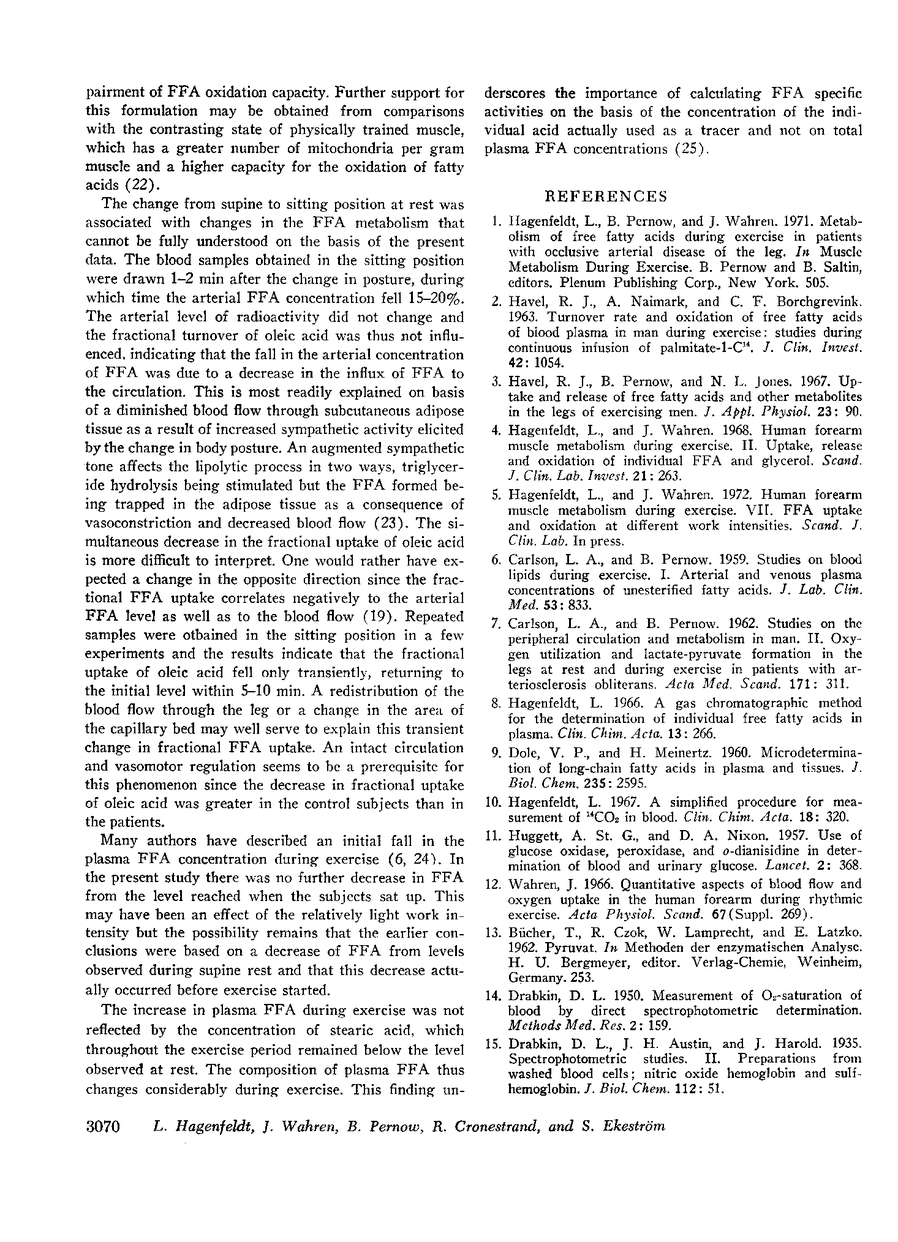 L. Hagenfeldt, J. Wahren, B. Pernow, R. Cronestrand, S. Ekeström