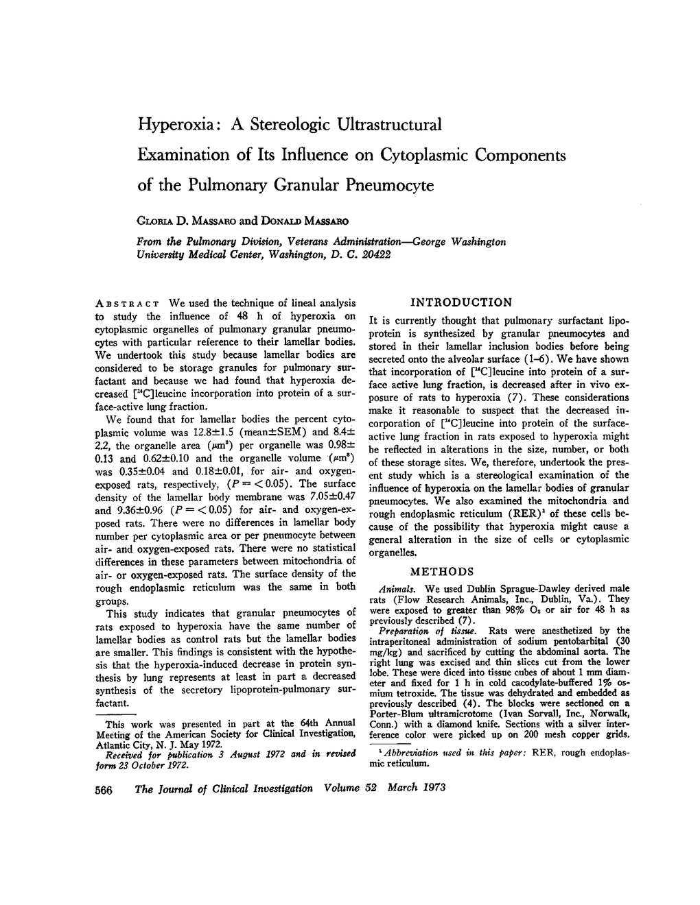 We used the technique of lineal analysis to study the influence of 48 h of hyperoxia on cytoplasmic organelles of pulmonary granular pneumocytes with particular reference to their lamellar bodies. We undertook this study because lamellar bodies are considered to be storage granules for pulmonary surfactant and because we had found that hyperoxia decreased [14C]leucine incorporation into protein of a surface-active lung fraction.