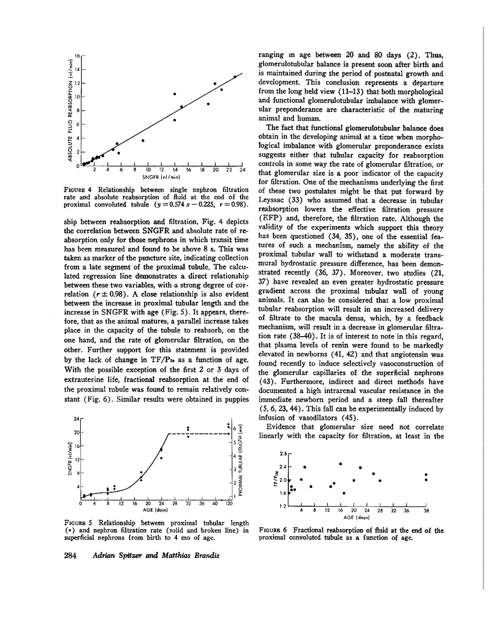 The functional and morphologic pattern of superficial nephron development was studied in guinea pigs ranging in age between 2 h and 38 days. Concomitent measurements of total kidney function and glomerular counts were also performed.