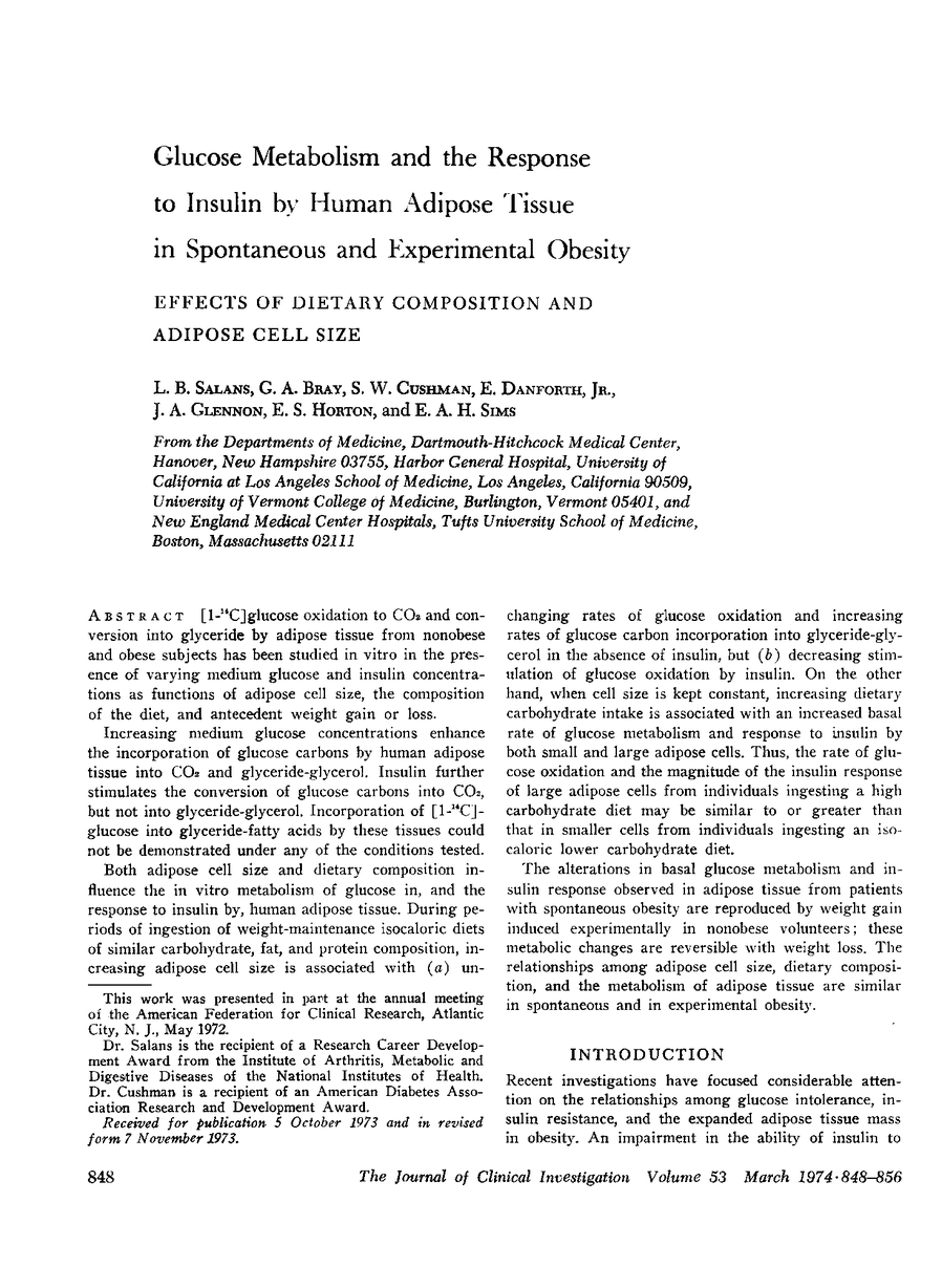 L. B. Salans, G. A. Bray, S. W. Cushman, E. Danforth Jr., J. A. Glennon, E. S. Horton, E. A. H. Sims