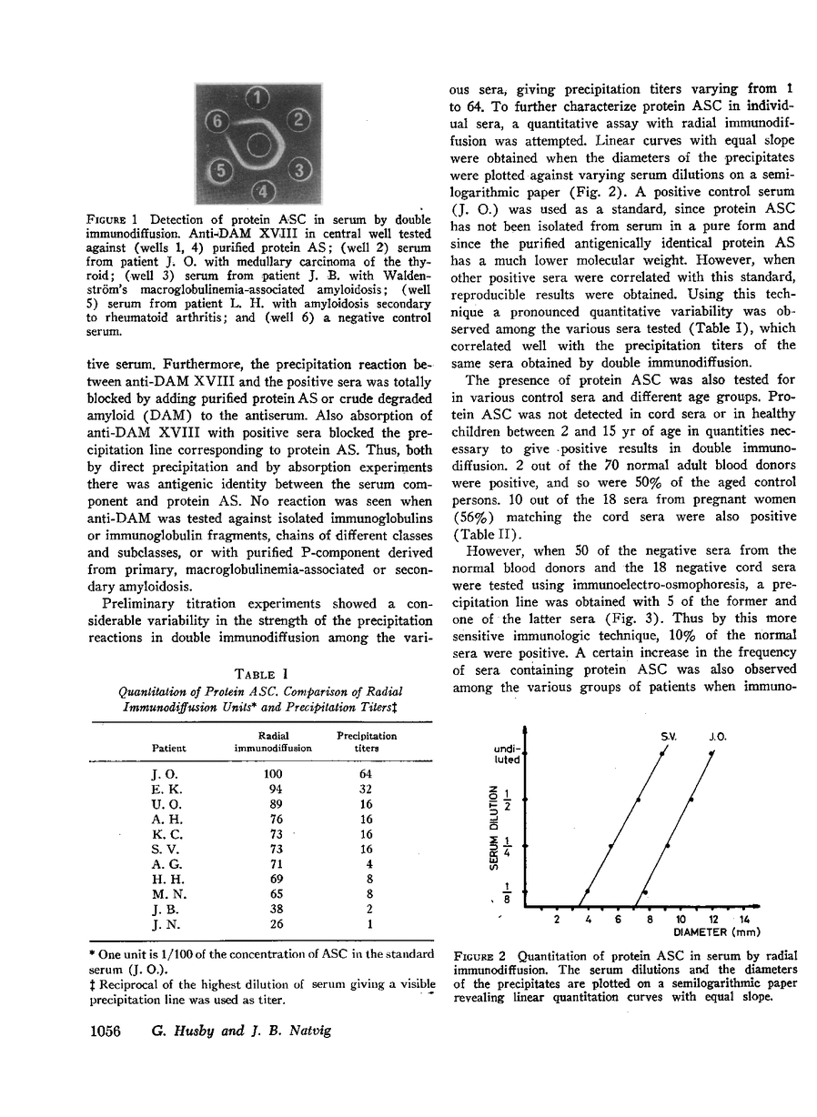 A nonimmunoglobulin protein with the molecular weight of 9,145 (protein AS) has been shown to be a principal component of the amyloid fibrils in different clinical types of amyloidosis. A protein component, antigenically closely related to protein AS, was detected in human sera. The protein AS-related component (protein ASC) was found in the sera of many groups of patients, including 48 out of 55 patients with various clinical types of amyloidosis. No structural relationship of protein ASC to the plasma component of amyloid was found. Protein ASC was also present with high frequency in the serum of diseases known to be frequently complicated by amyloidosis. In some cases, ASC was found in the sera of patients 2-3 yr before the diagnosis of amyloidosis was established. Protein ASC was also frequently found in hypogammaglobulinemia. Among normal individuals, protein ASC was seldom detected in the serum by our techniques, but there was a noticeable increase with age and during pregnancy. Moreover, a more sensitive technique, immunoelectro-osmophoresis, revealed protein ASC in a higher number of sera from both patients and normal controls. Thus protein ASC was suggested to be a normal serum constituent, usually present only in minor quantities. Under certain conditions, protein ASC increases considerably in serum, and may in such instances act as a precursor for the deposition of amyloid fibrils in the tissues.
