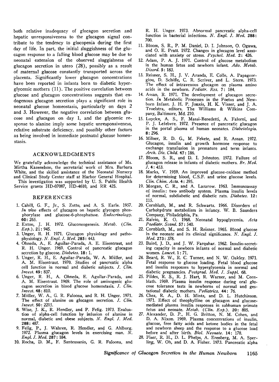 The extent and significance of spontaneous glucagon secretion in the immediate postnatal period were investigated in groups of normal infants studied cross-sectionally and longitudinally. Arginine-and alanine-stimulated glucagon secretion was also studied. Plasma glucagon concentrations were correlated with prevailing glucose and insulin concentrations.