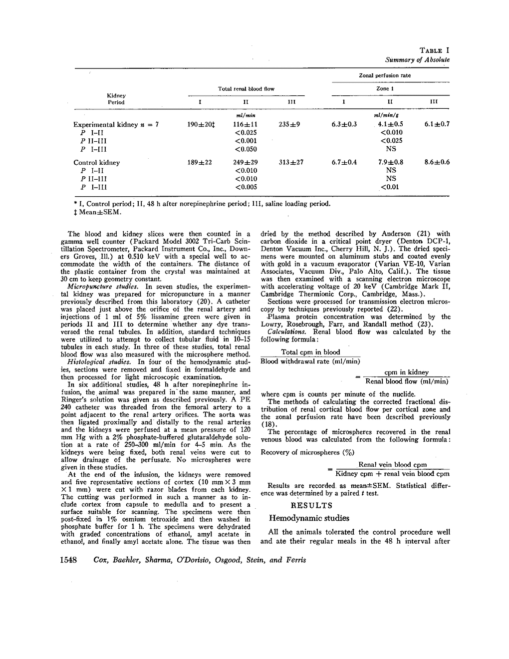 To further evaluate the mechanism of the oliguria of acute renal failure, a model was utilized in which intense and prolonged vasoconstriction produced the unilateral cessation of urine flow. The radioactive microsphere method was used to measure total and regional blood flow before and after the intrarenal infusion of norepinephrine, 0.75 μg/kg/min, for 2 h in the dog. In the control kidney, renal blood flow increased 32% 48 h after norepinephrine in association with a fall in the fractional distribution of flow to the outer cortex. In the experimental kidney, total renal blood flow fell from 190 ml/min before norepinephrine to 116 ml/min at 48 h (P < 0.025) with a uniform reduction in cortical blood flow. After the administration of 10% body wt Ringer's solution, there was a marked redistribution of flow to inner cortical nephrons in both the control and experimental kidney. In addition, there was a marked increase in total blood flow in both kidneys. On the experimental side, flow rose to 235 ml/min, a value greater than in either the control period (P < 0.05) or at 48 h after norepinephrine (P < 0.001). However, in spite of this marked increase in blood flow, there was essentially no urine flow from the experimental kidney. In separate studies, the animals were prepared for micropuncture. In all studies, the surface tubules were collapsed, and there was no evidence of tubular obstruction or leakage of filtrate. Over 99% of the 15-μM spheres were extracted in one pass through the experimental kidney. An analysis of the forces affecting filtration suggested that an alteration in the ultrafiltration coefficient may be responsible, at least in part, for the anuria in this model. In this regard, transmission and scanning electron microscopy revealed a marked abnormality in the epithelial structure of the glomerulus. It is suggested that a decrease in glomerular capillary permeability may be present in this model of acute renal failure.