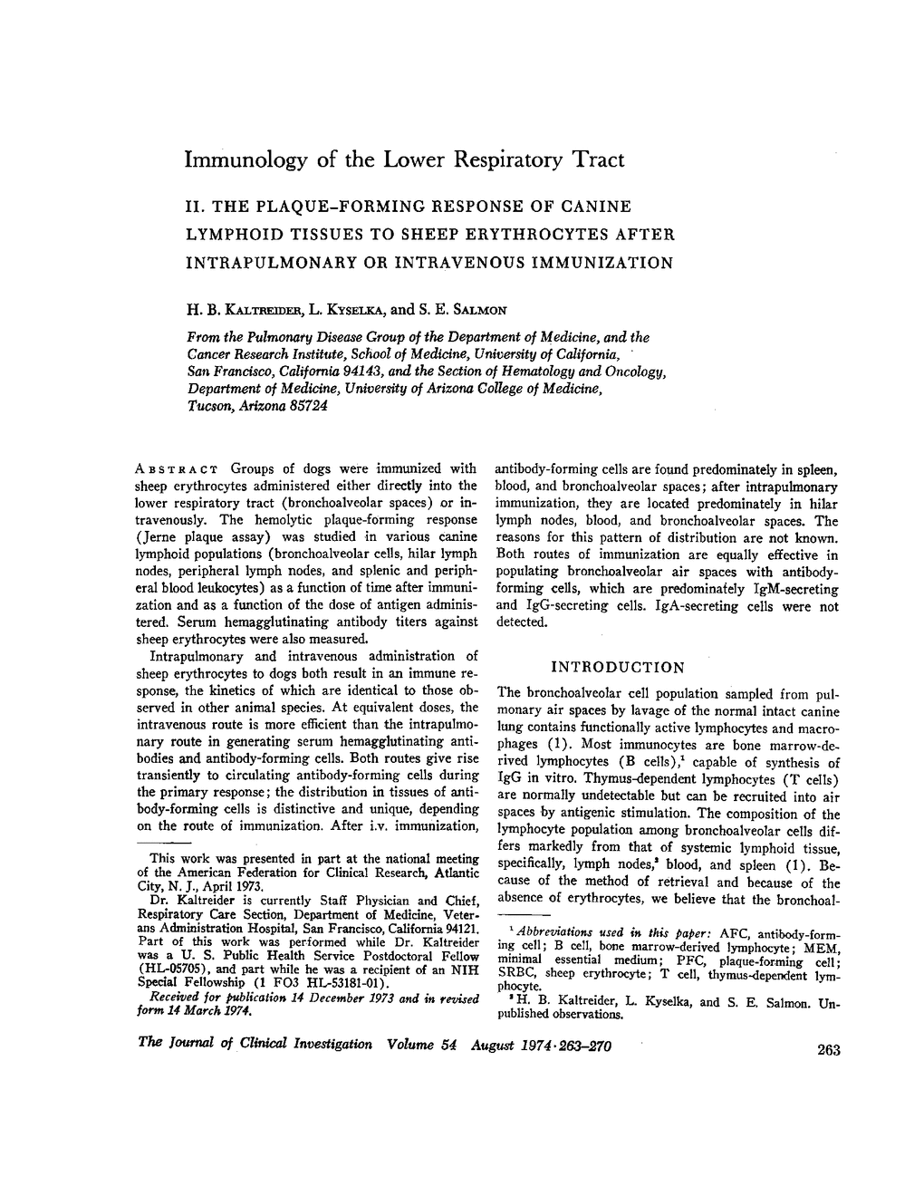 H. B. Kaltreider, L. Kyselka, S. E. Salmon