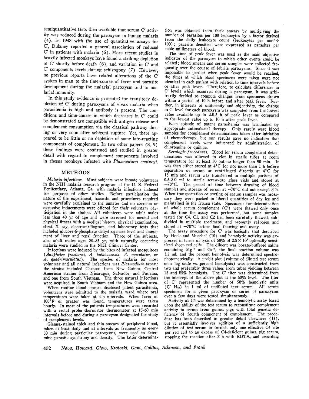 F. A. Neva, W. A. Howard, R. H. Glew, W. A. Krotoski, A. A. Gam, W. E. Collins, J. P. Atkinson, M. M. Frank