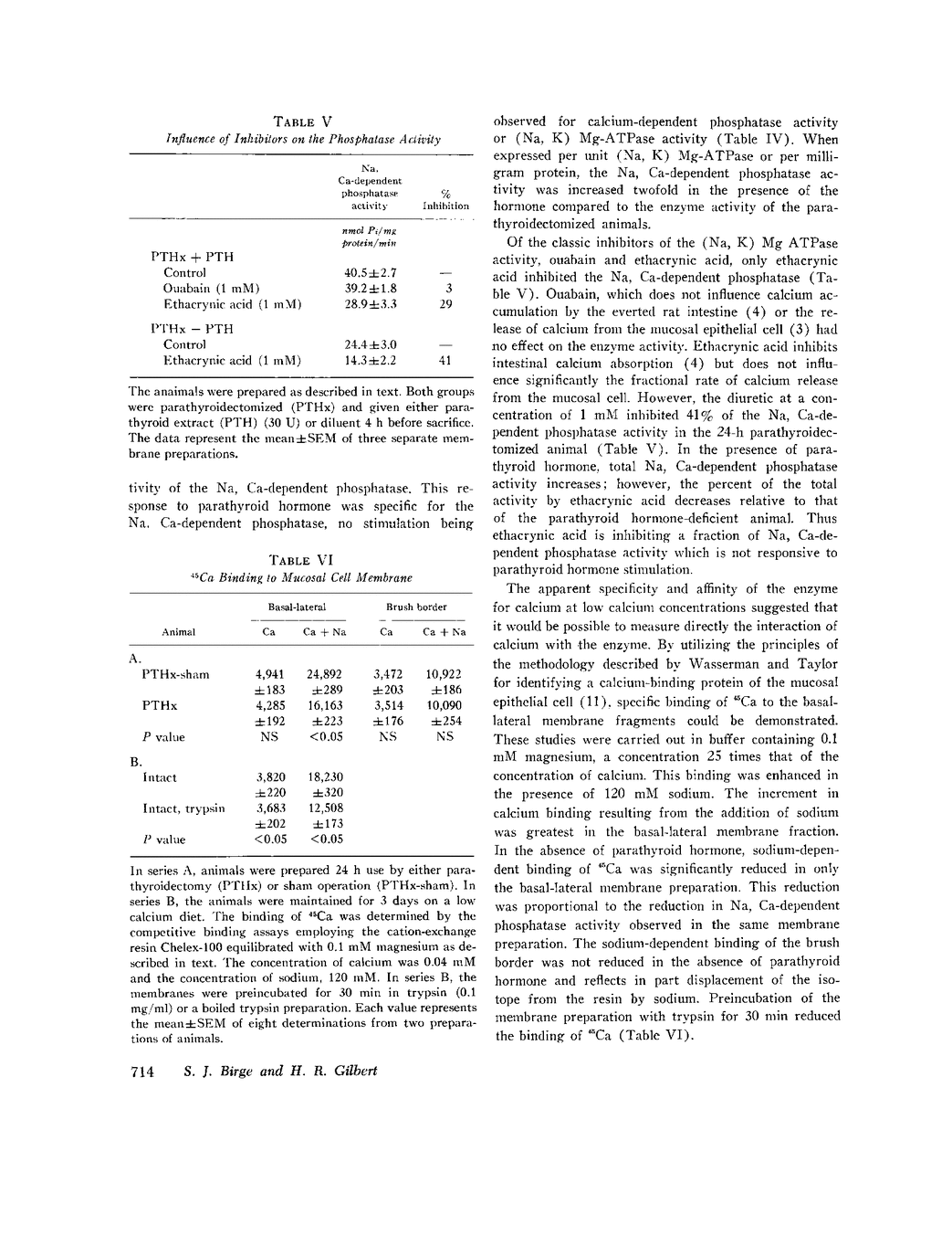 Previous reports suggest that the site of the energy-dependent intestinal calcium transport against an electropotential and concentration gradient is located along the basal-lateral membrane of the mucosal cell. Accordingly, basal-lateral membranes were prepared from rat intestinal homogenates in order to identify the enzyme mediating this step in the transport process. An alkaline phosphatase was delineated which utilized ATP as a substrate and was dependent on both Na- and Ca++ with optimum enzyme activity at 200 mM and 0.04 mM, respectively. Furthermore, the activity of the enzyme was demonstrated to decrease with the advance in age of the animal and to decrease with removal of the parathyroid glands, consistent with a decreased rate of 45Ca release from mucosal cells under the same experimental conditions. Calcium binding to basal-lateral membrane fragments was also sodium dependent and enhanced by the prior administration of parathyroid extract. The consistent correlation between the rate of calcium transport across the basal-lateral membrane of the mucosal cell and the activity of this Na, Ca-dependent phosphatase under a variety of experimental conditions suggest that this enzyme may mediate the parathyroid hormone-sensitive active transport of calcium across the intestine.