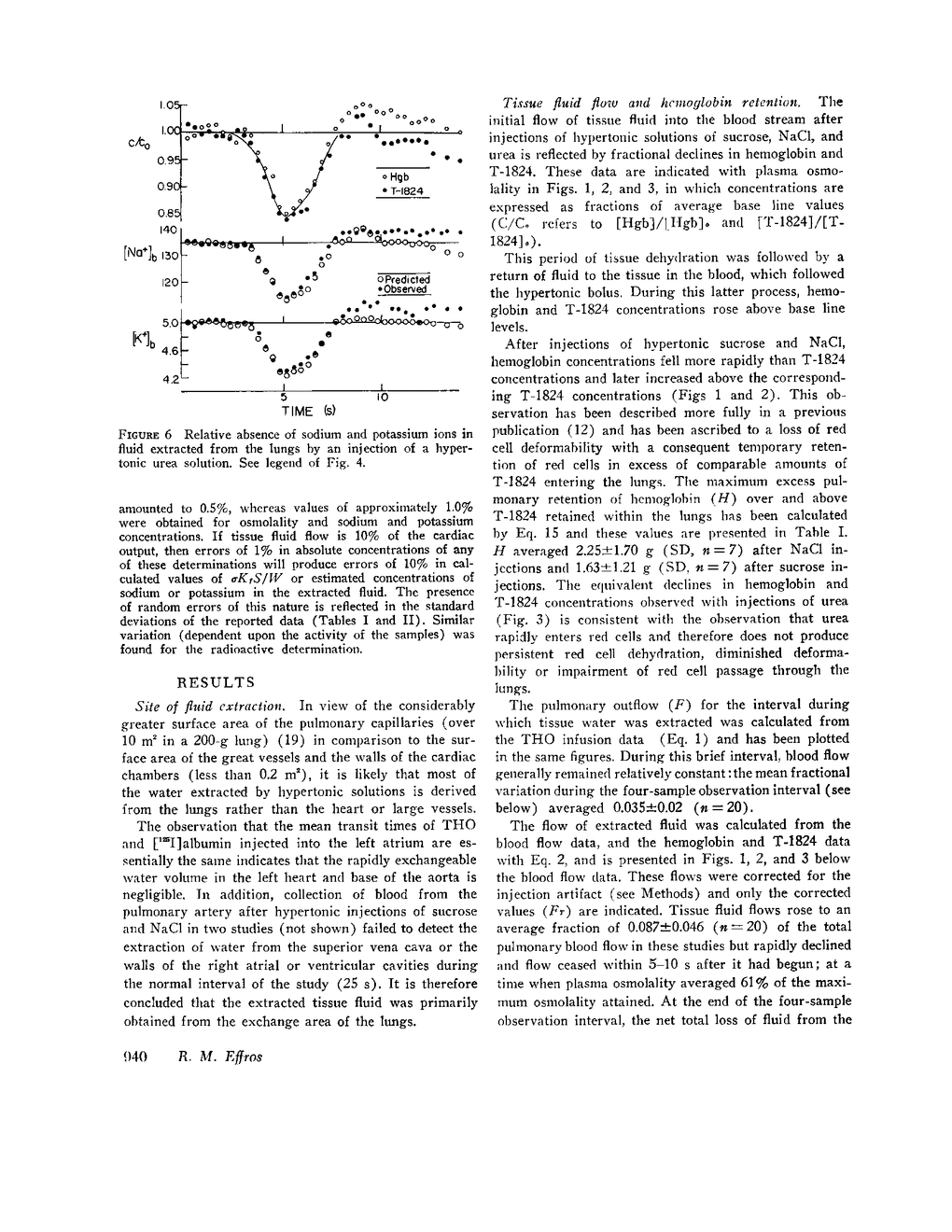 After injections of sucrose, NaCl, and urea solutions, the flow of tissue fluid from the lungs amounted to 0.182, 0.216, and 0.152 × 10-3 ml/s per mosmol/kg of concentration difference between plasma and tissues in each gram of wet tissue weight. The extracted fluid contained less than 20% of the Na+, K+ and urea concentrations of the plasma. It was concluded that this fluid was distinctly hypotonic in comparision with the fluids of the plasma and tissue compartments both before and after the injection of hypertonic solutions.