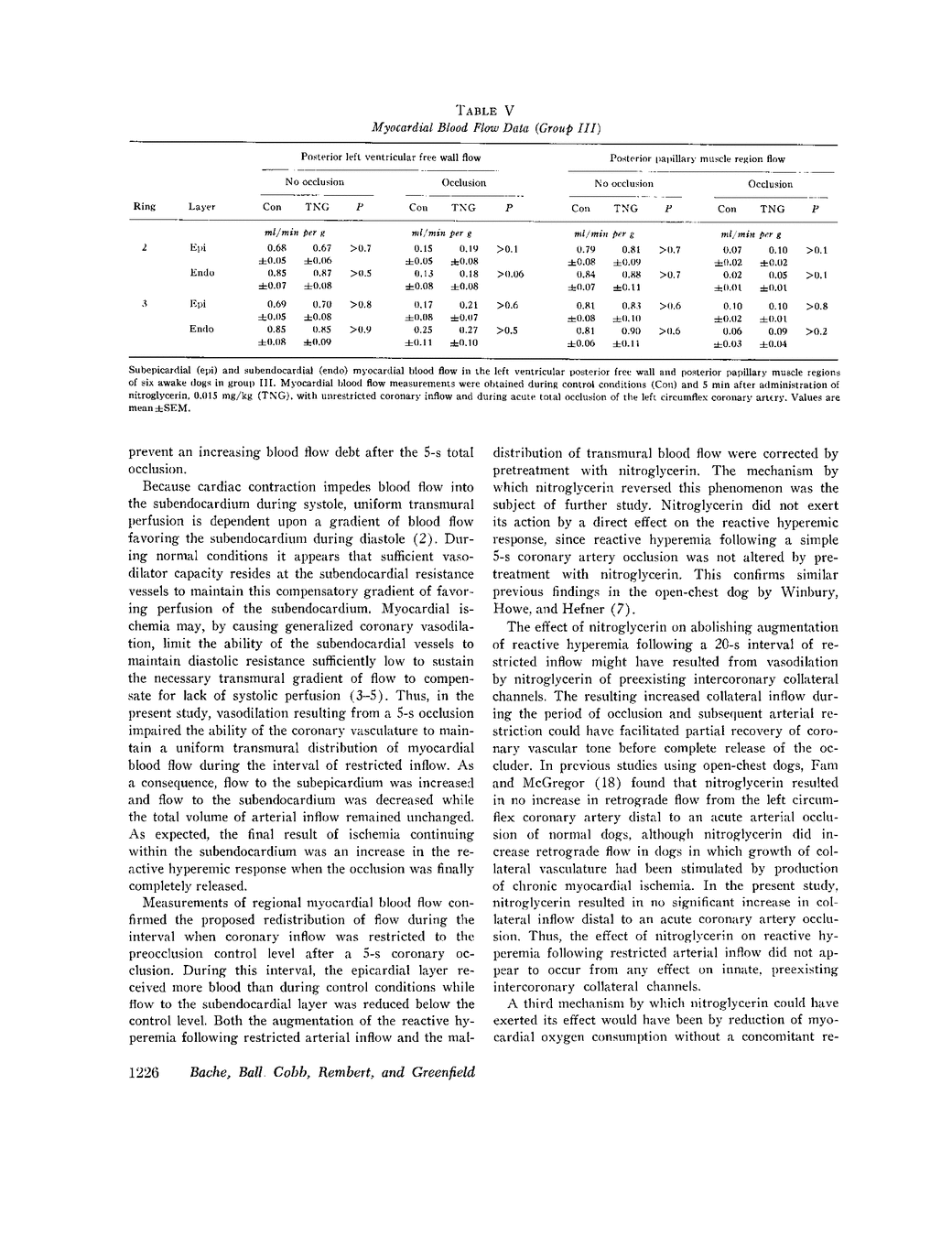R J Bache, R M Ball, F R Cobb, J C Rembert, J C Greenfield Jr