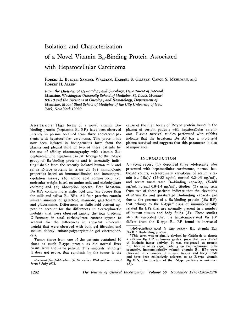 R L Burger, S Waxman, H S Gilbert, C S Mehlman, R H Allen