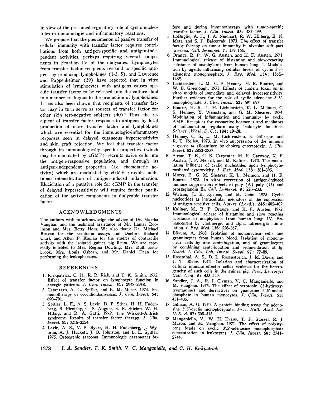 J A Sandler, T K Smith, V C Manganiello, C H Kirkpatrick