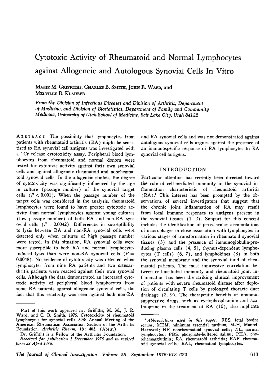 M M Griffiths, C B Smith, J R Ward, M R Klauber