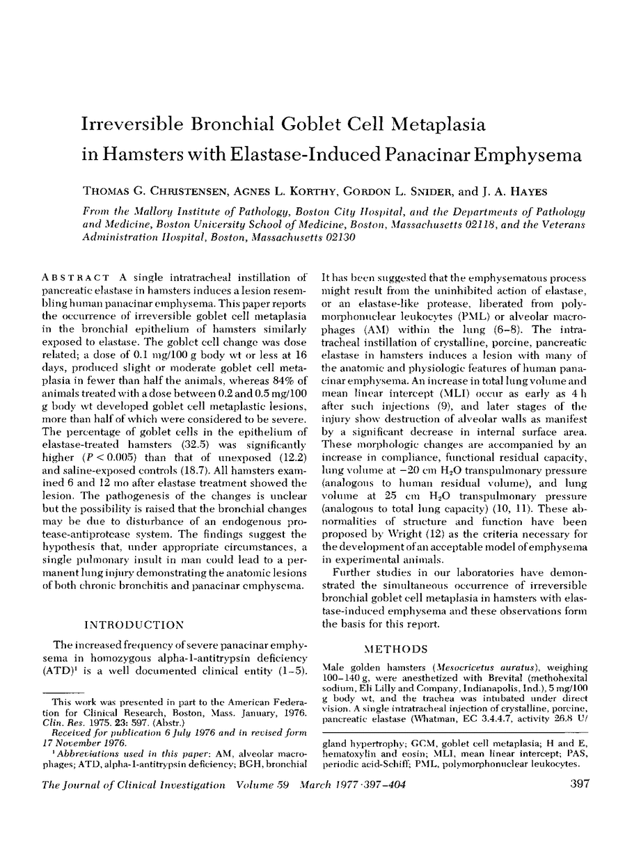 T G Christensen, A L Korthy, G L Snider, J A Hayes