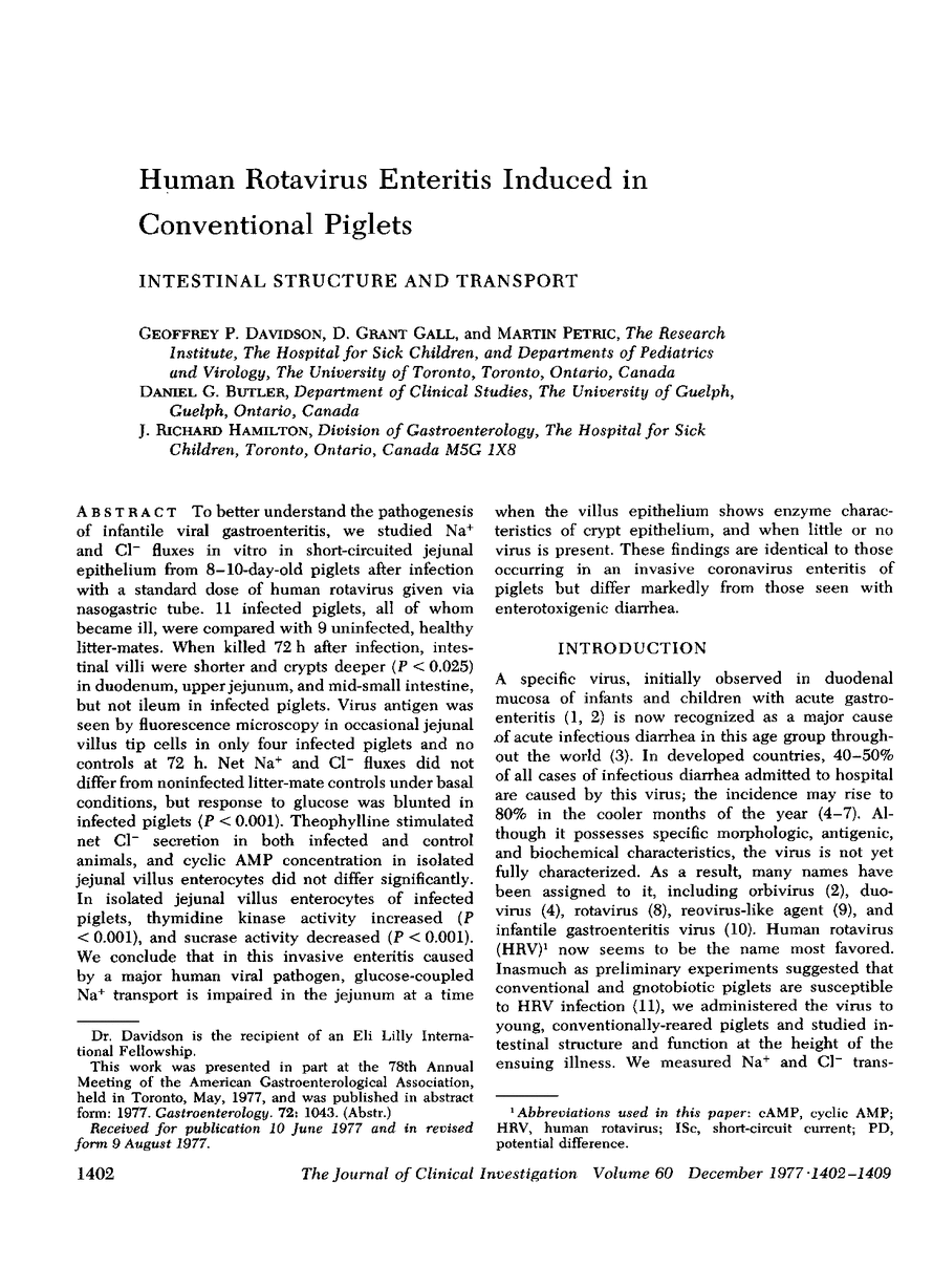 G P Davidson, D G Gall, M Petric, D G Butler, J R Hamilton