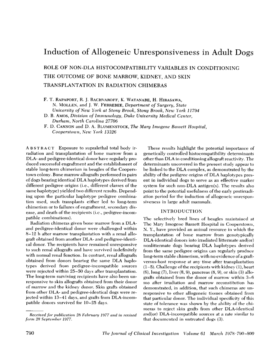 F. T. Rapaport, R. J. Bachvaroff, K. Watanabe, H. Hirasawa, N. Mollen, J. W. Ferrebee