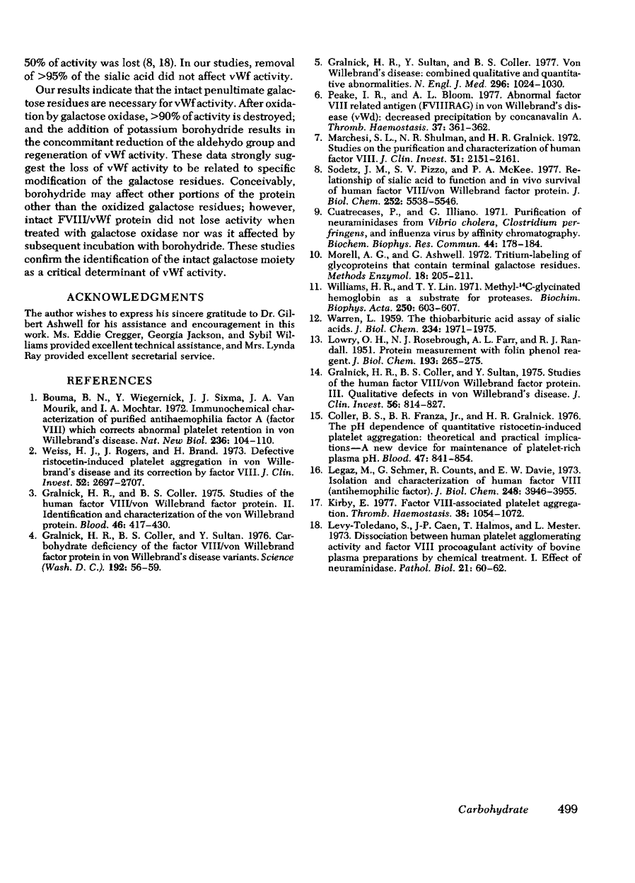The normal Factor VIII/von Willebrand factor protein has the ability to agglutinate or aggregate normal platelets in the presence of ristocetin (von Willebrand factor activity). Removal of greater than 95% of the sialic acid from this protein by neuraminidase did not affect the von Willebrand factor or procoagulant activity. However, oxidation of the penultimate galactose of the asialo Factor VIII/von Willebrand factor protein with galactose oxidase resulted in a progressive loss of von Willebrand factor activity with no effect on procoagulant activity. Reduction of the 6-aldehydo intermediate by potassium borohydride caused full regeneration of von Willebrand factor activity. These studies confirm the identification of the intact penultimate galactose moiety as a critical determinant of von Willebrand factor activity.