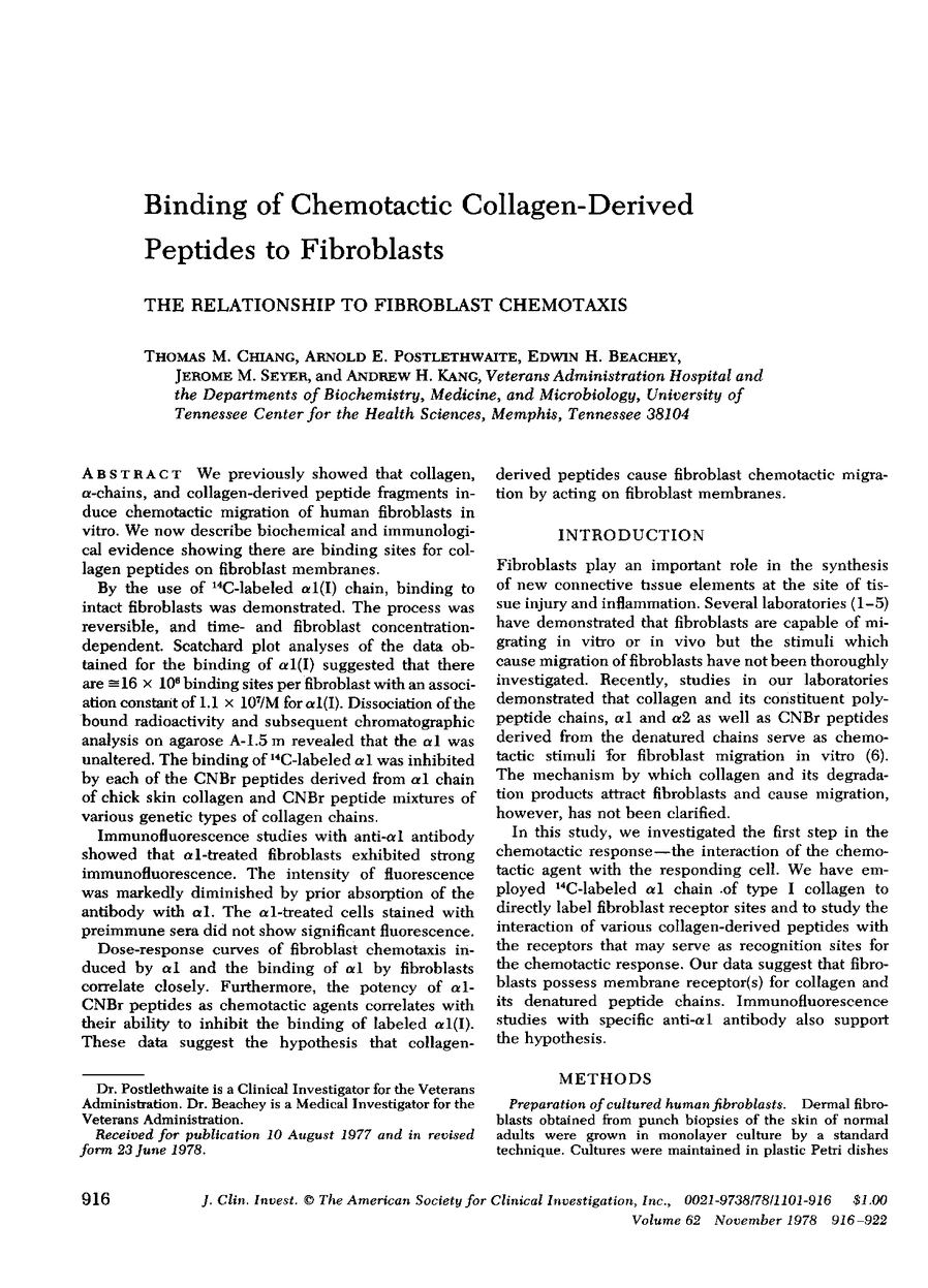 Thomas M. Chiang, Arnold E. Postlethwaite, Edwin H. Beachey, Jerome M. Seyer, Andrew H. Kang