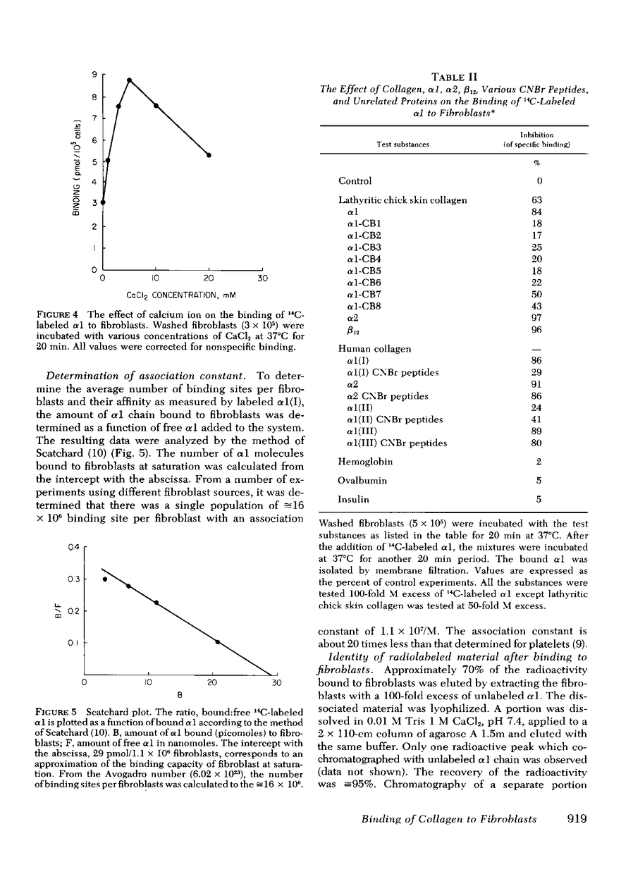 We previously showed that collagen, α-chains, and collagen-derived peptide fragments induce chemotactic migration of human fibroblasts in vitro. We now describe biochemical and immunological evidence showing there are binding sites for collagen peptides on fibroblast membranes.