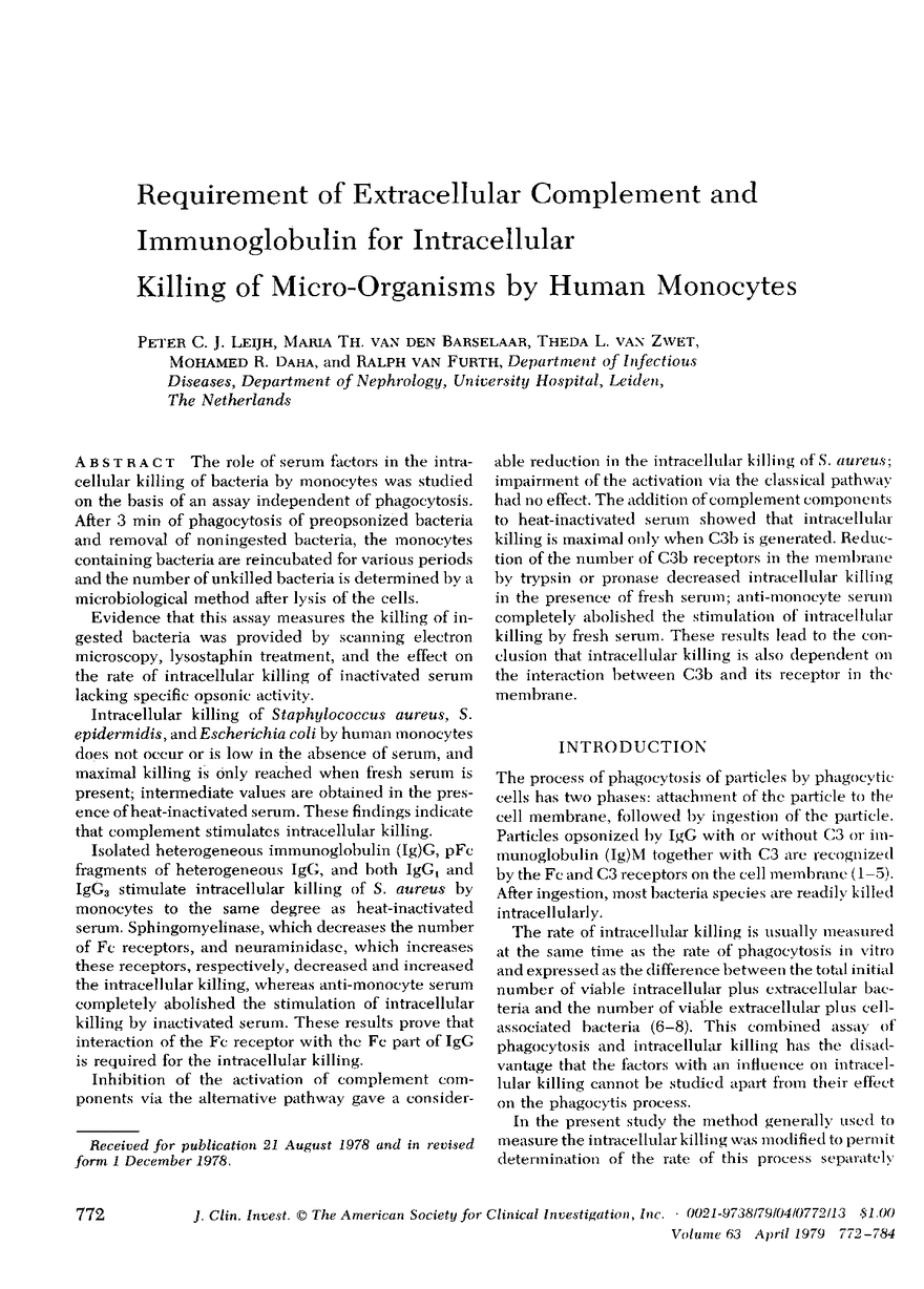 P C Leijh, M T van den Barselaar, T L van Zwet, M R Daha, R van Furth