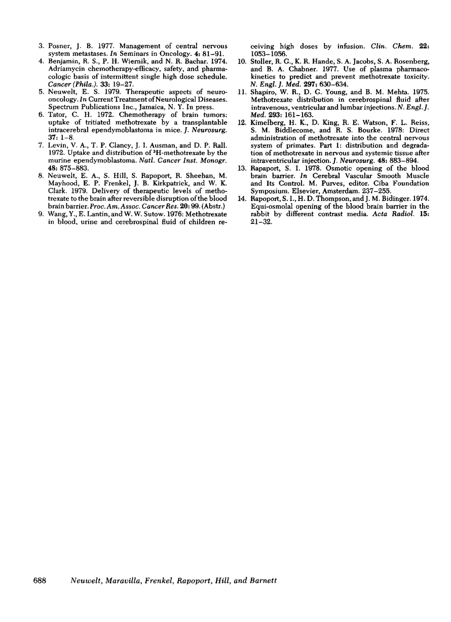 E A Neuwelt, K R Maravilla, E P Frenkel, S I Rapaport, S A Hill, P A Barnett