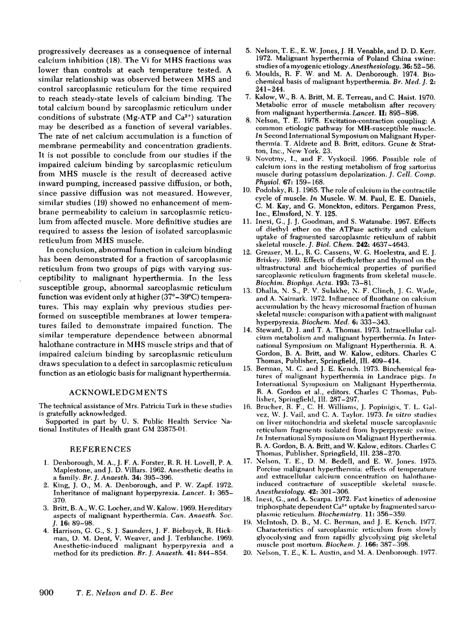 T E Nelson, D E Bee