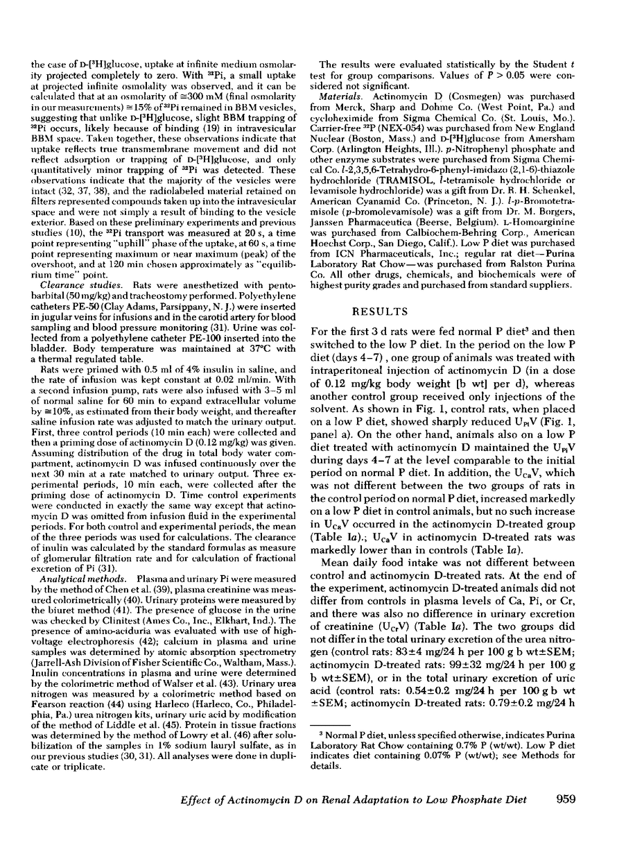 The major renal adaptive changes in response to selective dietary phosphate restriction are a marked reduction in urinary excretion of phosphate and an increased urinary excretion of calcium; at the cellular level, there is selective increase in renal cortical brush border membrane phosphate uptake and increase in specific activity of alkaline phosphatase. In the present study we examined whether these functional and biochemical adaptive changes could be blocked by drugs known to inhibit protein synthesis.