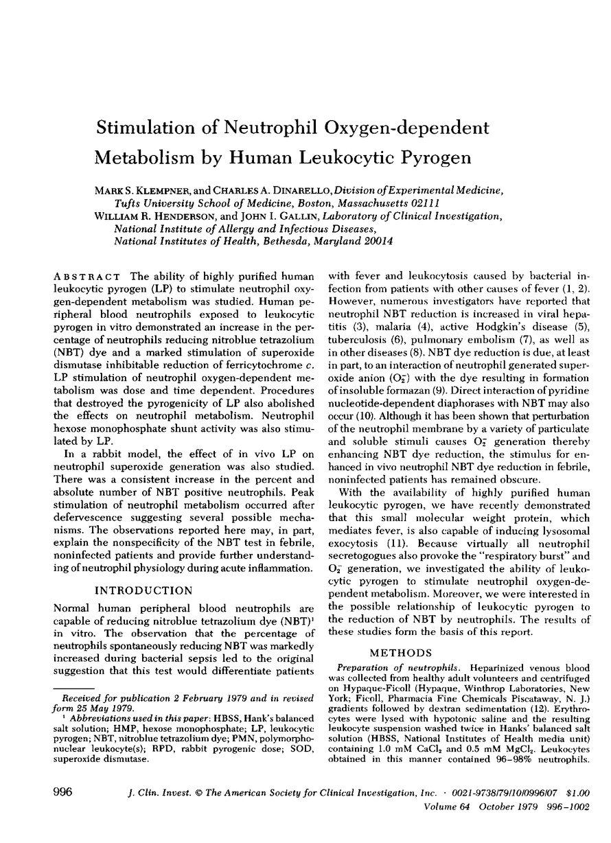 M S Klempner, C A Dinarello, W R Henderson, J I Gallin