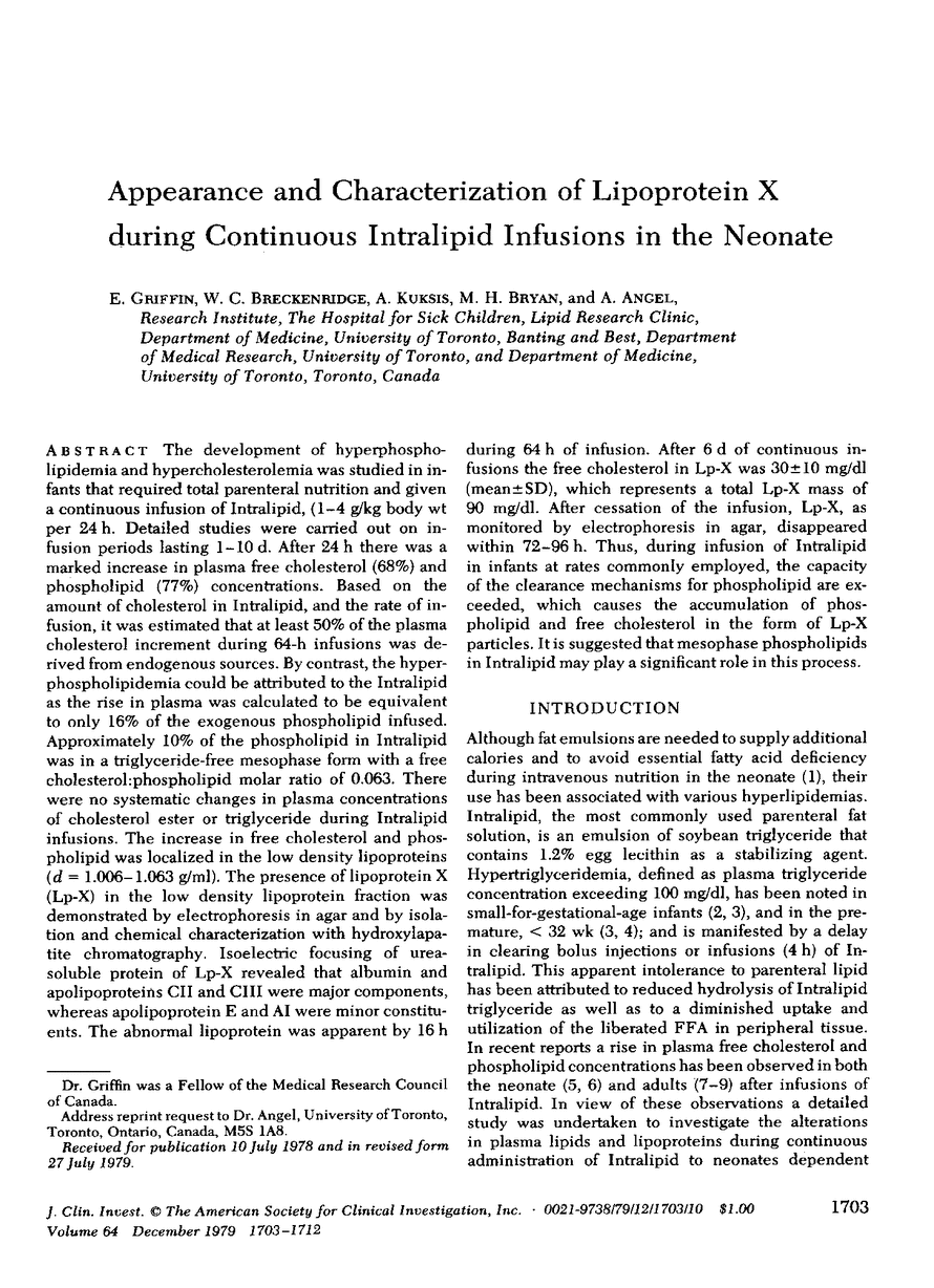 E. Griffin, W. C. Breckenridge, A. Kuksis, M. H. Bryan, A. Angel