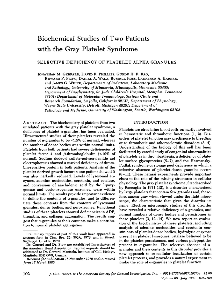 J M Gerrard, D R Phillips, G H Rao, E F Plow, D A Walz, R Ross, L A Harker, J G White