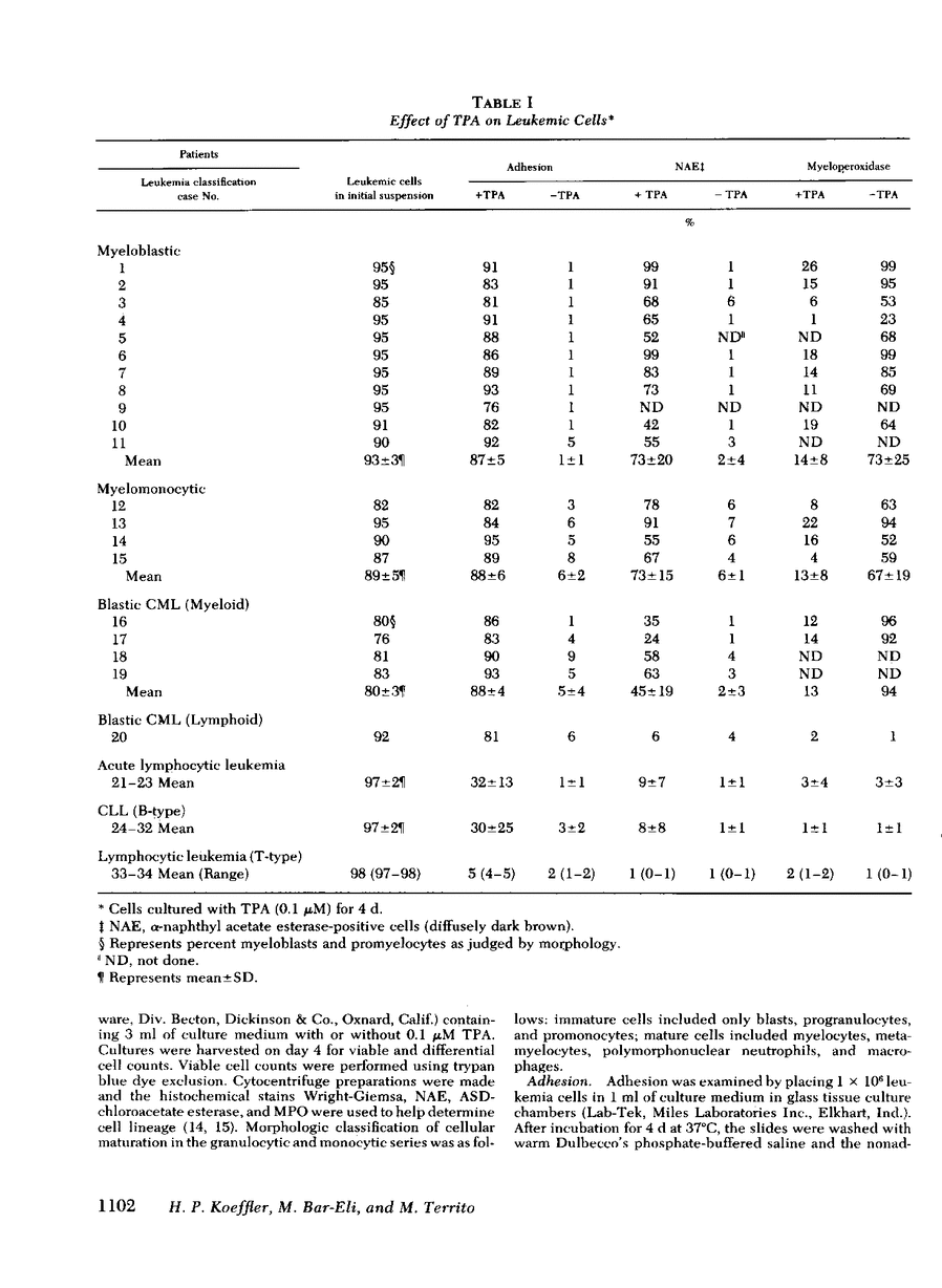 H P Koeffler, M Bar-Eli, M Territo