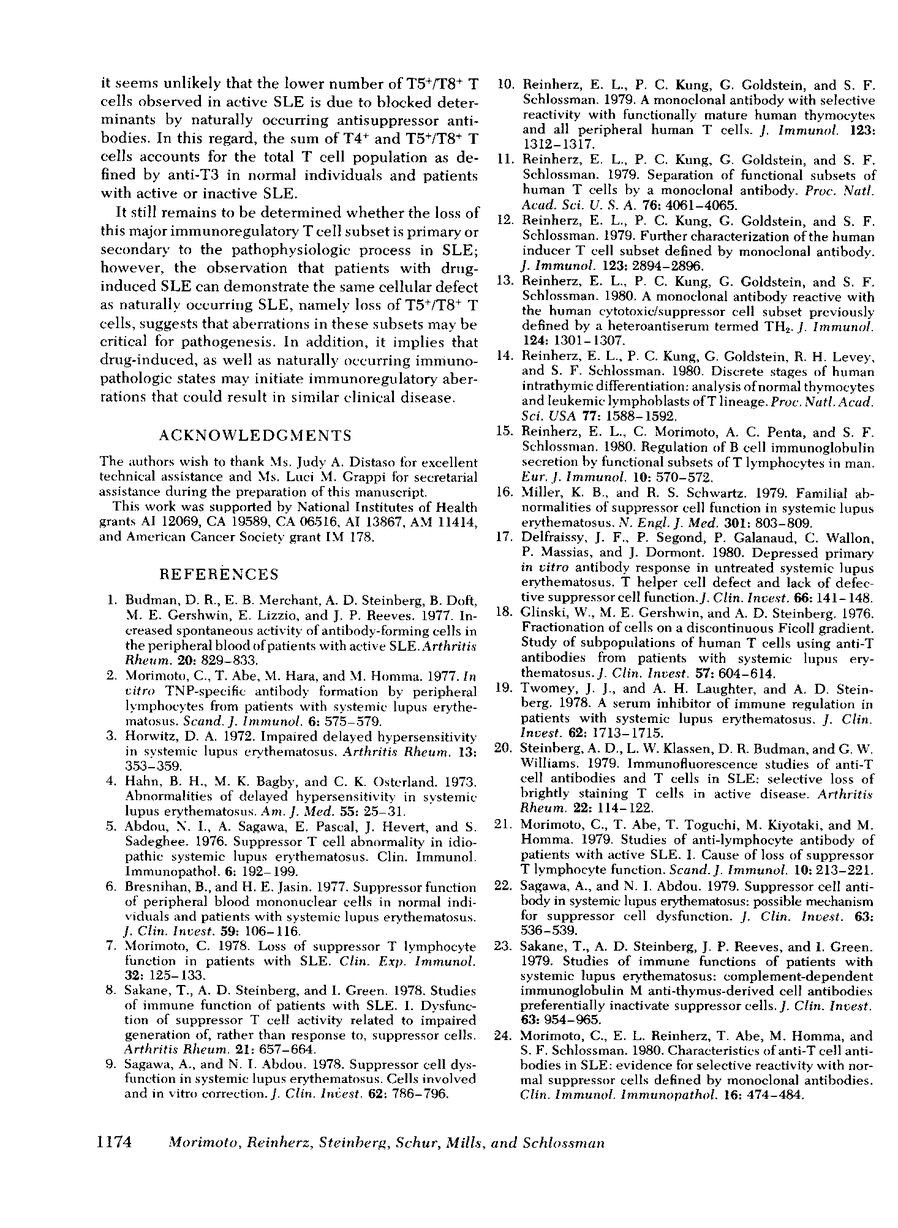 C Morimoto, E L Reinherz, S F Schlossman, P H Schur, J A Mills, A D Steinberg