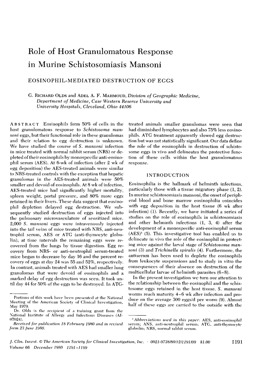 G. Richard Olds, Adel A. F. Mahmoud