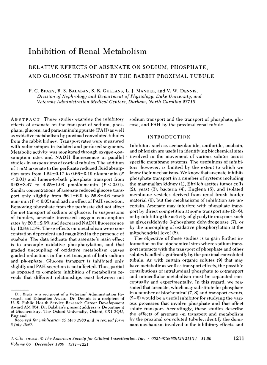 P C Brazy, R S Balaban, S R Gullans, L J Mandel, V W Dennis