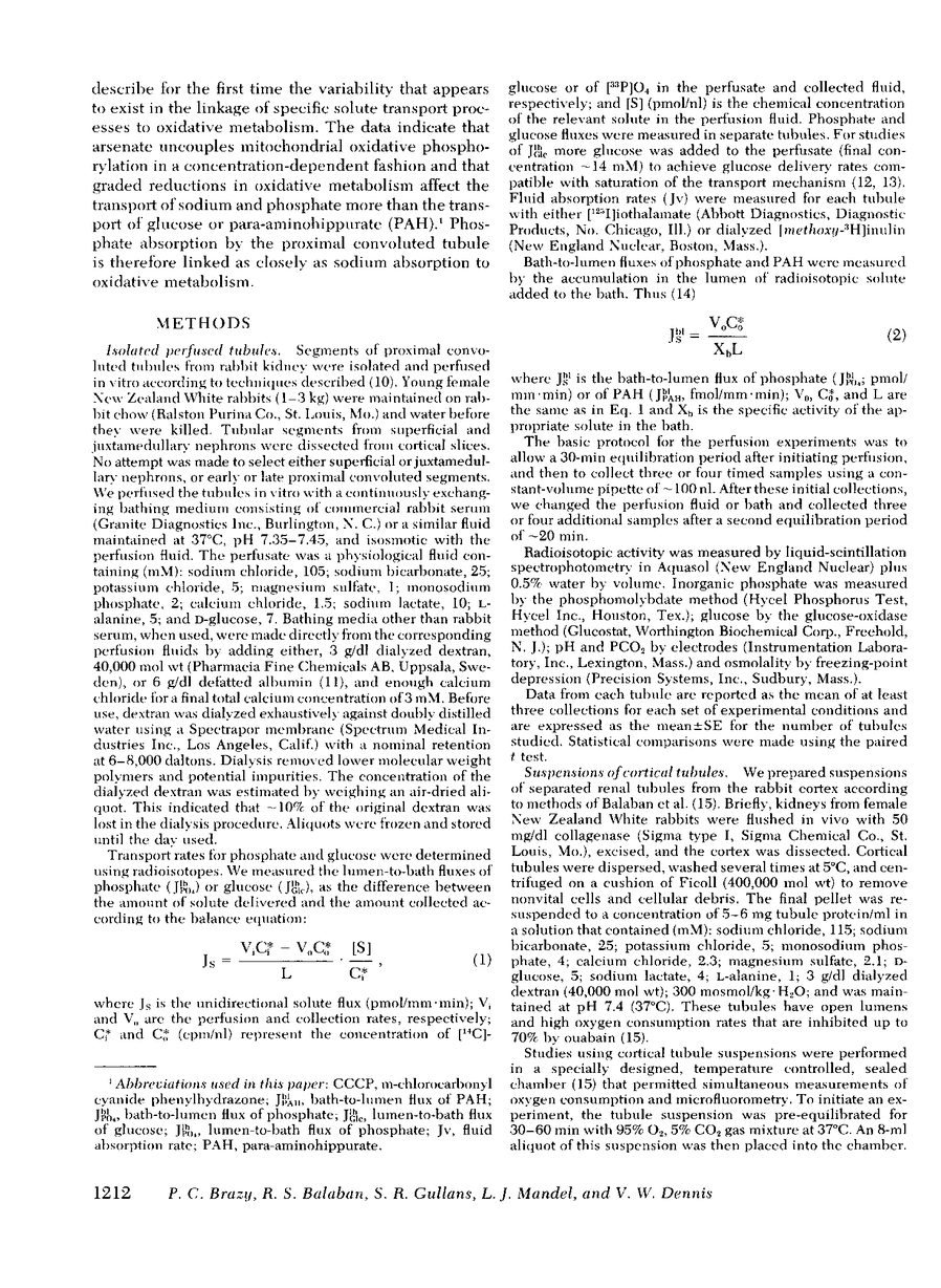 P C Brazy, R S Balaban, S R Gullans, L J Mandel, V W Dennis