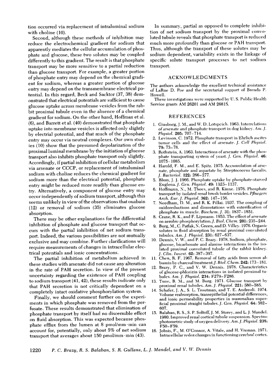 P C Brazy, R S Balaban, S R Gullans, L J Mandel, V W Dennis