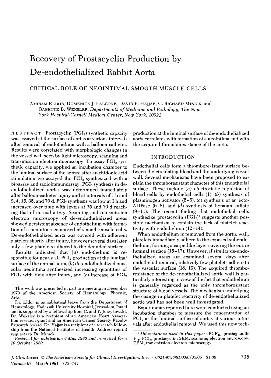 A Eldor, D J Falcone, D P Hajjar, C R Minick, B B Weksler
