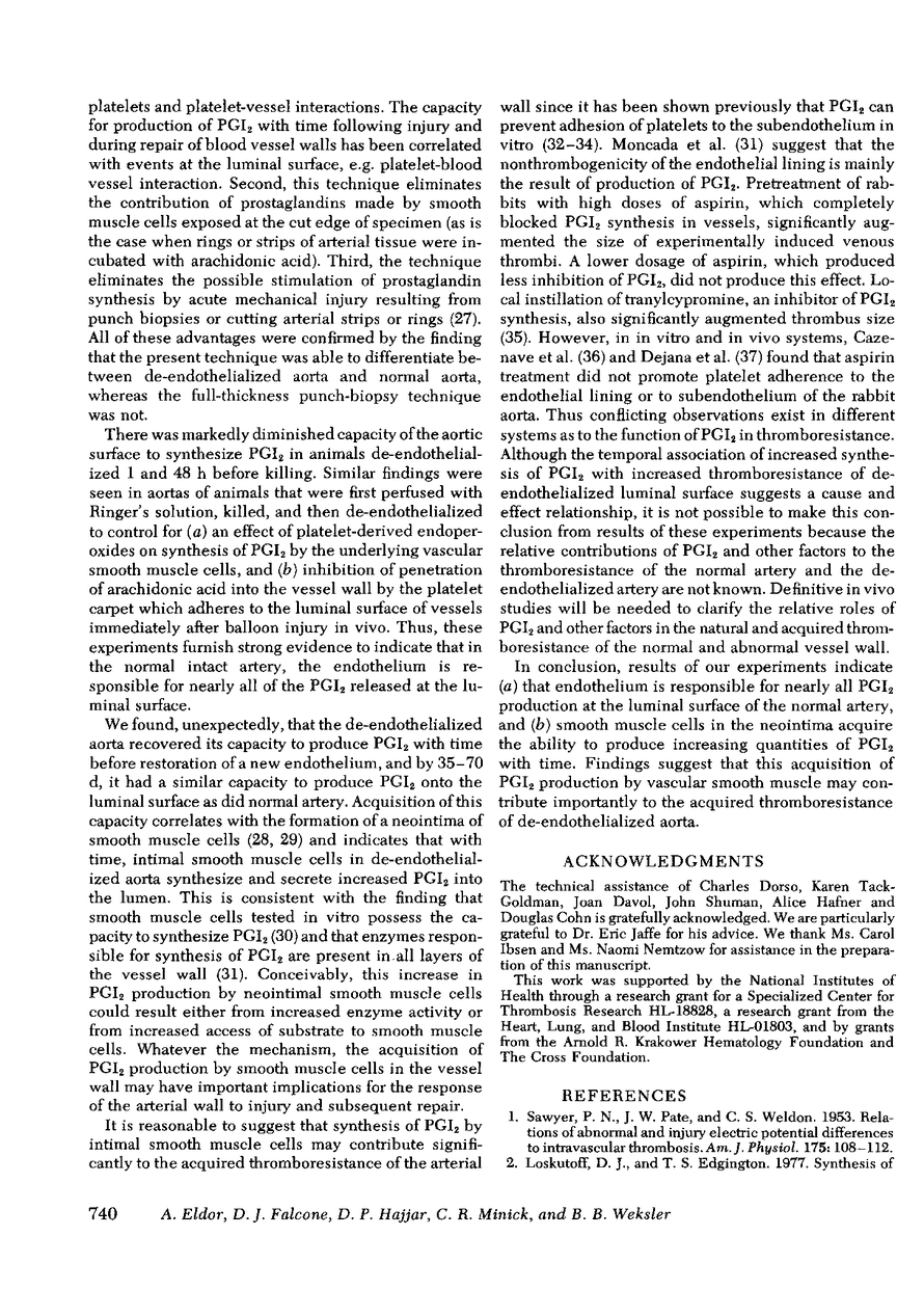 A Eldor, D J Falcone, D P Hajjar, C R Minick, B B Weksler
