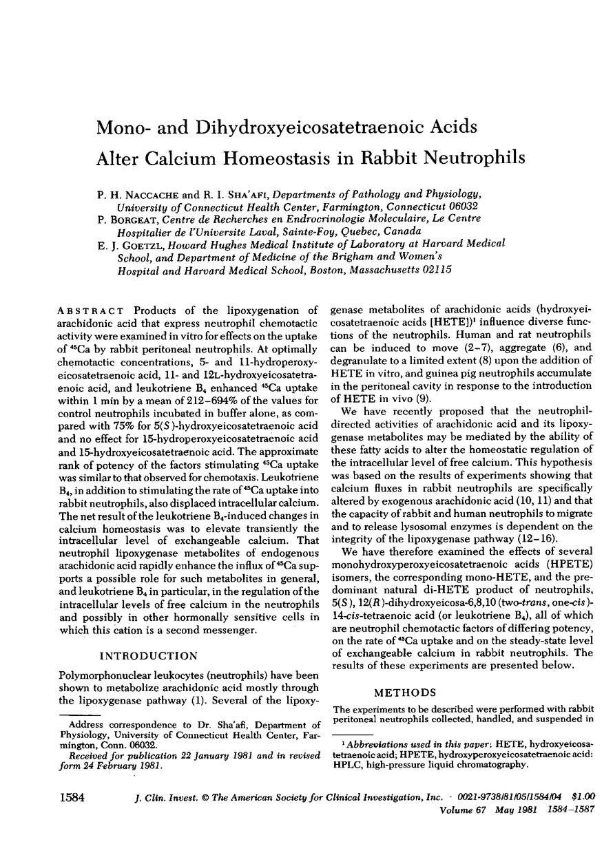 P H Naccache, R I Sha'afi, P Borgeat, E J Goetzl
