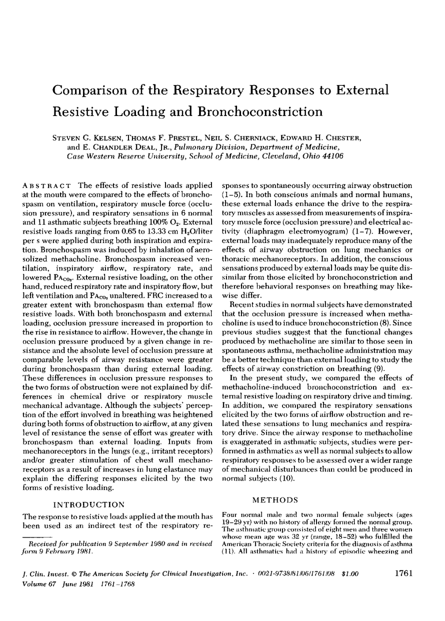 S G Kelsen, T F Prestel, N S Cherniack, E H Chester, E C Deal Jr