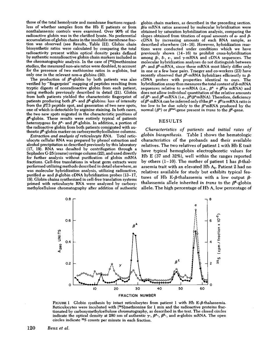 Inheritance of the gene for betaE-globin is associated with hypochromia and microcytosis, reminiscent of typical heterozygous beta-thalassemia. Patients with hemoglobin (Hb)E-beta-thalassemia exhibit clinical phenotypes of severe beta-thalassemia, a circumstance not encountered in other compound heterozygous states for structural beta-chain mutations and beta-thalassemia. We have analyzed the kinetics of globin synthesis and the levels of globin messenger (m) RNA accumulation in patients with Hb E-beta-thalassemia and Hb E trait. The initial rate of beta-globin synthesis (betaE/alpha=0.20-0.34) was less than expected on the basis of gene dosage, or comparable studies of other compound heterozygous states for beta-thalassemia and structurally abnormal beta-chains. betaE-globin synthesis was not only reduced during short-term incubations (1-5 min), but also remained relatively unchanged during long-term pulse or chase incubations up to 5h. Analysis of globin mRNA by cell-free translation and molecular hybridization confirmed that the unexpectedly low levels of betaE-globin synthesis were associated with comparable reduction in the levels of beta-globin mRNA. In Hb E-beta-thalassemia the betaA + betaE (alpha globin nRNA ratio observed were substantially lower than those obtained from reticulocytes of patients with heterozygous beta-thalassemia, or Hb S-betaO-thalassemia, while in Hb E trait, the betaA + betaE/alpha mRNA ratio was in the ranged observed for beta-thalassemia trait. The betaE-globin gene specifies reduced accumulation of betaE-globin mRNA, a property characteristic of other forms of beta-thalassemia. The beta-thalassemia phenotype associated with inheritance of Hb E is thus determined at the level of beta-globin mRNA metabolism.