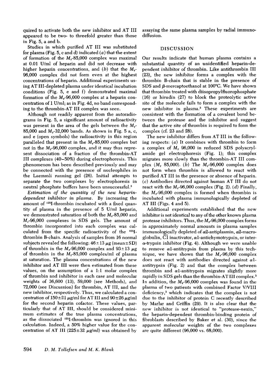 D M Tollefsen, M K Blank