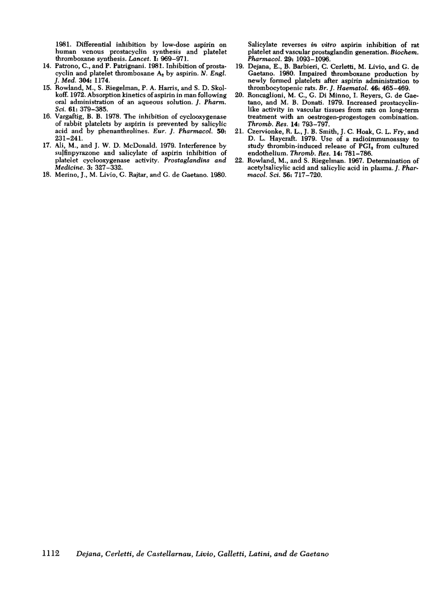 E Dejana, C Cerletti, C de Castellarnau, M Livio, F Galletti, R Latini, G de Gaetano