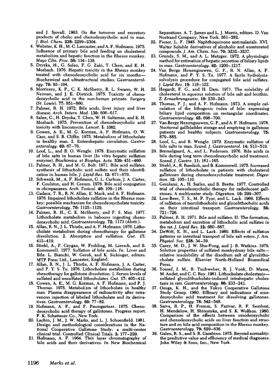 Chenodeoxycholic acid (CDC), through its metabolite, lithocholic acid (LC), is hepatotoxic in certain species. The cause of elevations of serum transaminase in 25% of humans ingesting CDC, however, is unknown, but also may be due to LC. Because efficient hepatic sulfation of LC may protect against hepatic injury, the aim of this study was to determine if sulfation of LC might modify CDC-induced elevations of transaminase. Pretreatment sulfation fraction (SF) was estimated in 63 randomly selected patients with gallstones in a double-blind randomized trial of CDC, 750 mg/d, 375 mg/d, or placebo; in 27 of these, SF was repeated at 1 or 2 yr. In four other patients, the SF was measured at 2 yr only. Serum glutamic oxaloacetic transaminase and serum glutamic pyruvic transaminase were determined monthly for 3 mo and then every 3 or 4 mo; an elevation of transaminase was defined as > 150% of the normal upper limit in asymptomatic patients. 10 μCi of 3H-glyco-LC (sp act 84 mCi/mol) was ingested 10-12 h before fasting duodenal biliary drainage. Bile acids in bile were separated by thin-layer chromatography. The SF was estimated as a percentage of total radioactivity (scintillation counting) in sulfated glyco-LC. The standard deviation for replicate SF determinations (n = 311) was 2.1% The pretreatment SF (mean 60.7±1.7 SEM) correlated inversely with age (r = 0.336, P < 0.005) and directly with the obesity index (r = 0.495, P > 0.001), but was independent of sex. The SF, remeasured at 1 or 2 yr, did not change significantly with time or CDC. Among CDC-treated patients, elevations of transaminase occurred in 75% of patients with a SF < 45% vs. 11% with a SF > 45% (P < 0.001). In conclusion, a SF < 45% occurred in patients with gallstones who had a high probability of developing elevated serum transaminase when treated with CDC. Thus, sulfation of lithocholate may modify CDC-induced elevations of serum transaminase.
