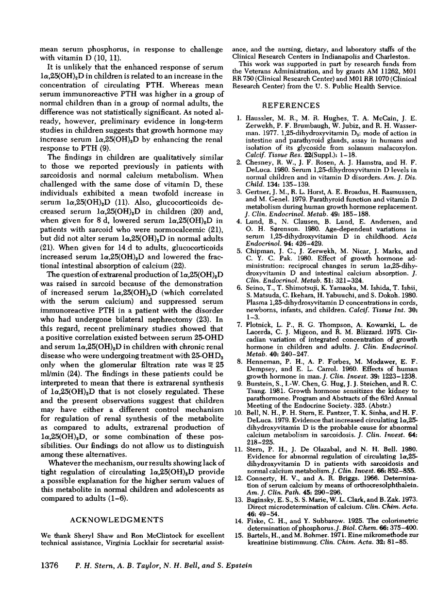 P H Stern, A B Taylor, N H Bell, S Epstein