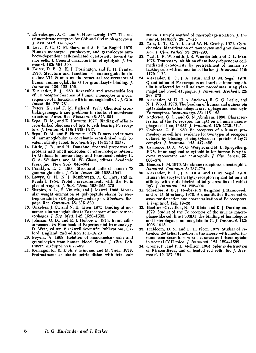 Covalently cross-linked dimers and oligomers composed of 2-4 subunits of monoclonal human IgG1 were prepared by incubation of purified monomeric IgG1 with glutaraldehyde followed by gelfiltration chromatography. Monomers, dimers, and oligomers then were labeled with 125I and used to compare the binding properties of IgG Fc receptors on human peripheral blood monocytes and polymorphonuclear leukocytes (PMN). Binding of IgG1 to monocytes at 37°C and of IgG1 polymers to PMN at 4°C could be readily measured and were found to be reversible and saturable. Scatchard plots of binding were linear in each instance. Monocytes bound a mean of 20,200±6,800 molecules/cell of IgG1 monomer at saturation and comparable amounts of dimer or oligomer. The mean association constant (Ka) for binding of IgG1 monomer to monocytes was 8.6 × 108M−1 and the Ka for binding of dimer and oligomer were three-to fivefold greater.