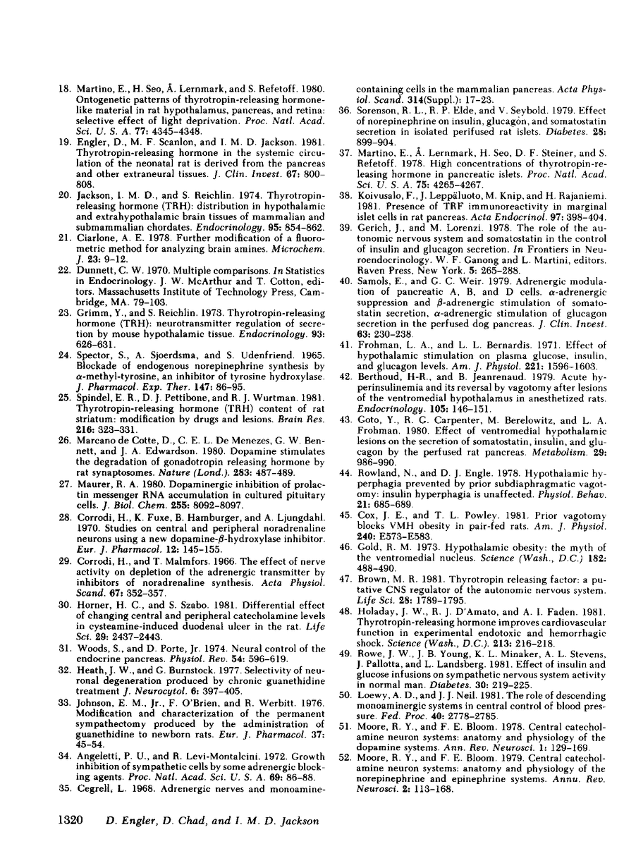 These studies have been undertaken to evaluate the role of the brain noradrenergic and dopaminergic pathways in the regulation of the secretion of thyrotropin-releasing hormone (TRH) in the central nervous system (CNS) and pancreas of the neonatal rat. When CNS stores of norepinephrine (NE) were selectively reduced by the subcutaneous administration of the dopamine-β-hydroxylase inhibitor FLA-63, TRH concentrations were significantly reduced throughout the brain. However, when CNS stores of both NE and dopamine (DA) were depleted by the subcutaneous administration of the tyrosine hydroxylase inhibitor α-methyl-ρ-tyrosine (α-MT), TRH concentrations in the brain were not significantly altered.