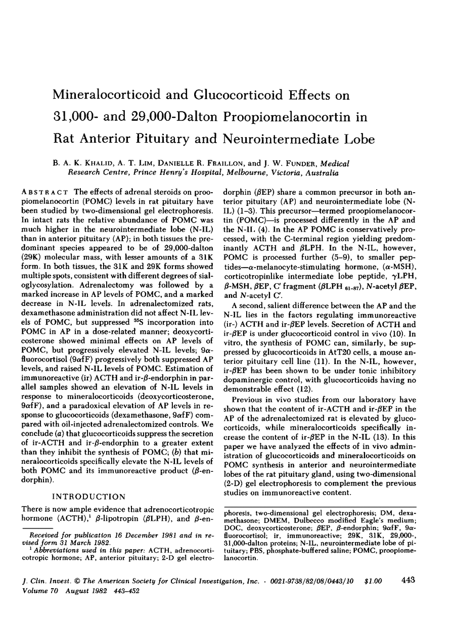 B A Khalid, A T Lim, D R Fraillon, J W Funder