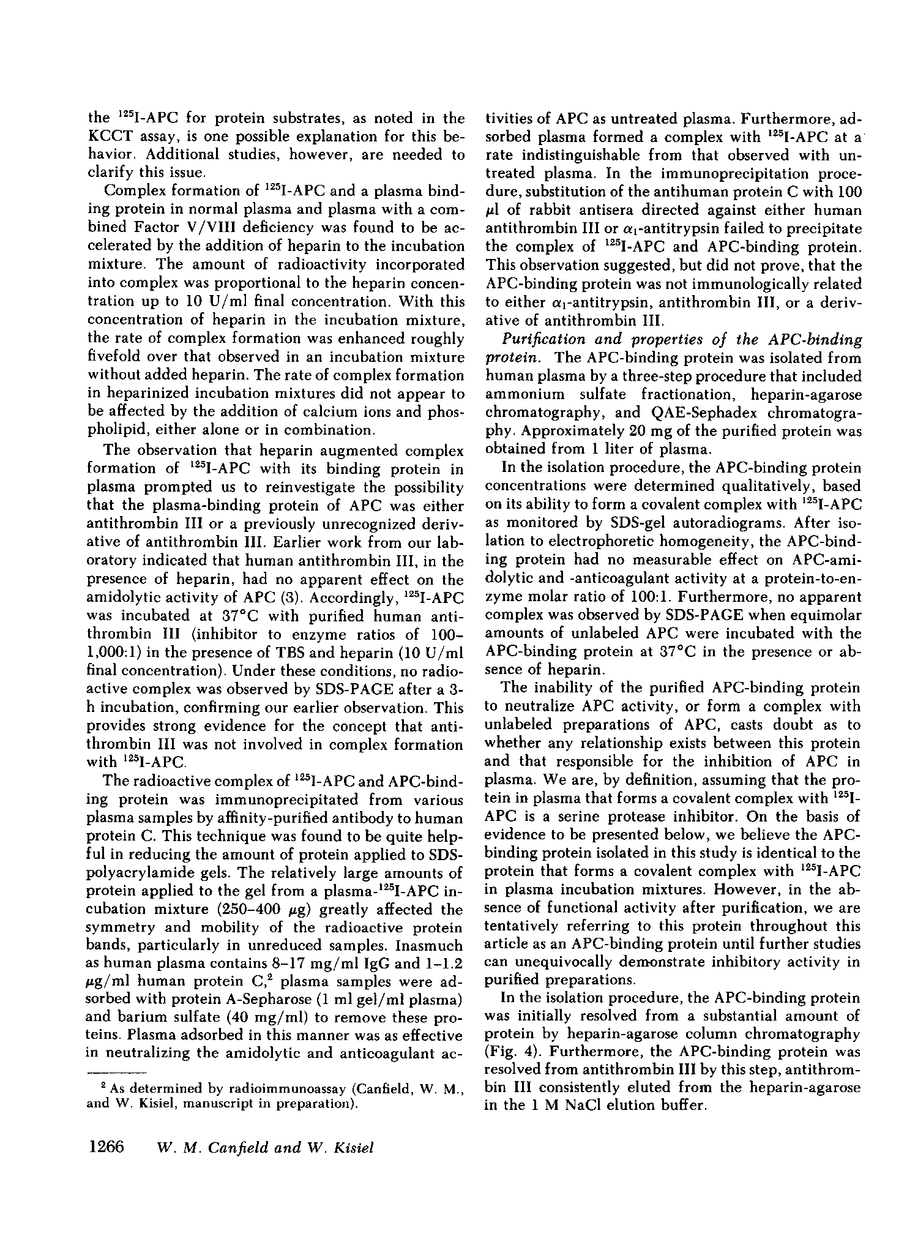 W M Canfield, W Kisiel