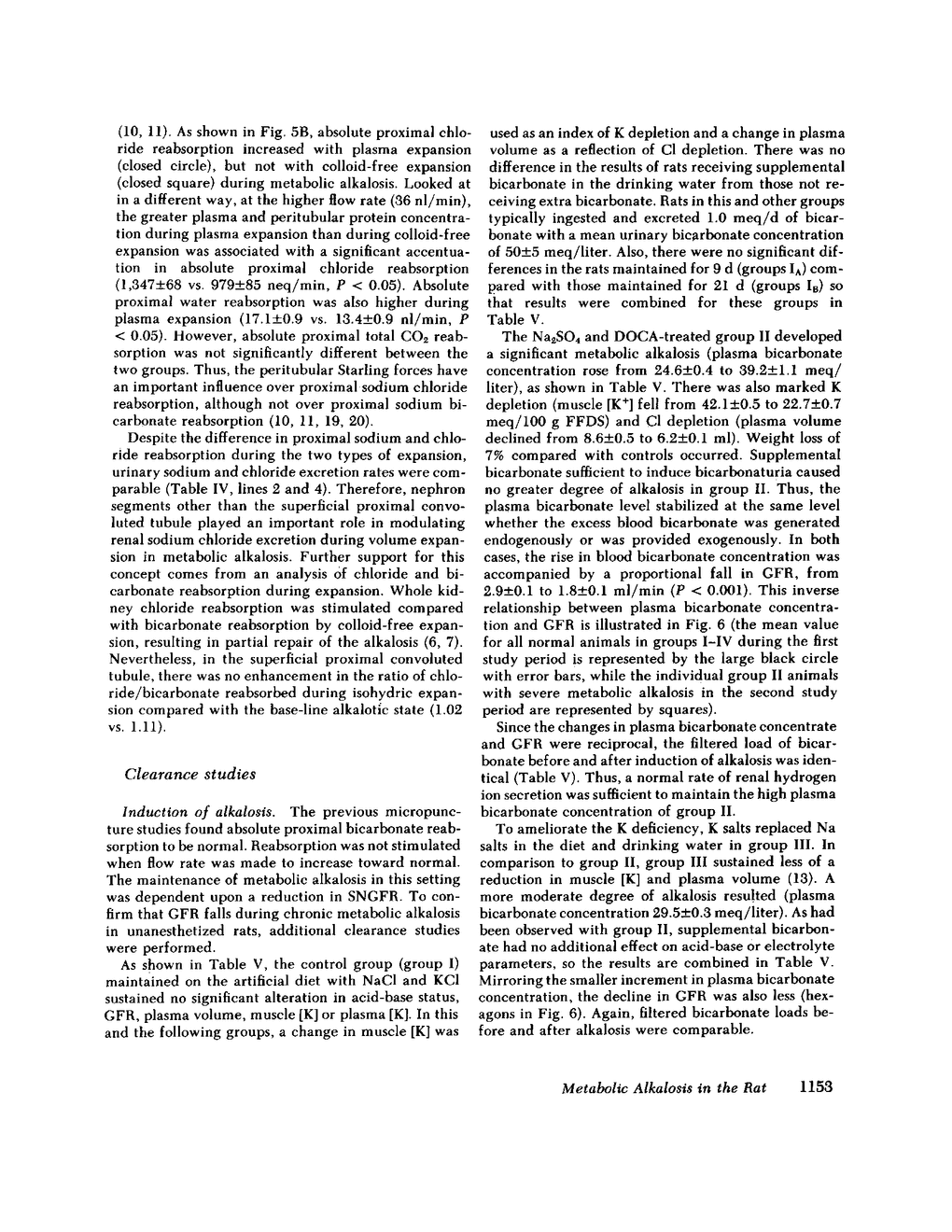 Maintenance of chronic metabolic alkalosis might occur by a reduction in glomerular filtration rate (GFR) without increased bicarbonate reabsorption or, alternatively, by augmentation of bicarbonate reabsorption with a normal GFR. To differentiate these possibilities, free-flow micropuncture was performed in alkalotic Munich-Wistar rats with a glomerular ultrafiltrate total CO2 concentration of 46.5 +/- 0.9 mM (vs. 27.7 +/- 0.9 mM in controls). Alkalotic animals had a markedly reduced single nephron GFR compared with controls (27.4 +/- 1.5 vs. 51.6 +/- 1.6 nl/min) and consequently unchanged filtered load of bicarbonate. Absolute proximal bicarbonate reabsorption in alkalotic animals was similar to controls (981 +/- 49 vs. 1,081 +/- 57 pmol/min), despite a higher luminal bicarbonate concentration, contracted extracellular volume, and potassium depletion. When single nephron GFR during alkalosis was increased toward normal by isohydric volume expansion or in another group by isotonic bicarbonate loading, absolute proximal bicarbonate reabsorption was not substantially augmented and bicarbonaturia developed. To confirm that a fall in GFR occurs during metabolic alkalosis, additional clearance studies were performed. Awake rats were studied before and after induction of metabolic alkalosis associated with varying amounts of potassium and chloride depletion. In all cases, the rise in blood bicarbonate concentration was inversely proportional to a reduction in GFR; filtered bicarbonate load remained normal. In conclusion, a reduction in GFR is proposed as being critical for maintaining chronic metabolic alkalosis in the rat. Constancy of the filtered bicarbonate load allows normal rates of renal bicarbonate reabsorption to maintain the alkalotic state.