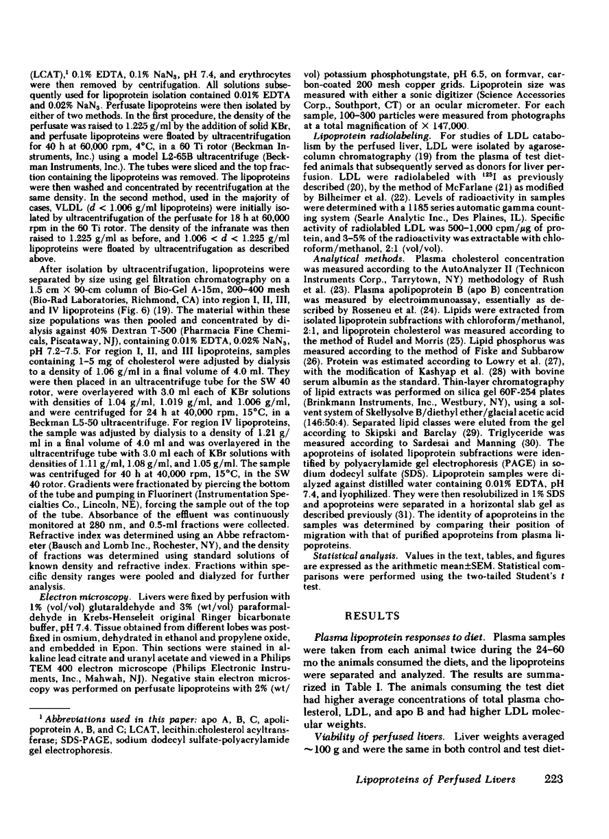 Nonhuman primates consuming diets containing cholesterol develop coronary artery atherosclerosis that we have found to be highly correlated with an increase in the size and cholesteryl ester content of plasma low density lipoproteins (LDL). The present studies were designed to determine whether the enlarged plasma LDL are produced directly by the liver of cholesterol-fed monkeys. African green monkeys were fed a diet containing 40% of calories as butter fat and either 0.16 mg cholesterol/kcal (control diet) or 0.78 mg cholesterol/kcal (test diet). The livers of these monkeys were perfused by recirculation with a lipoprotein-free medium for 4 h. The rate of accumulation of perfusate cholesterol was linear and greater in liver perfusates from test diet-fed vs. control diet-fed monkeys and was positively correlated with both the plasma cholesterol concentration and LDL size in the donor animal. All perfusate d less than 1.063 g/ml lipoprotein subfractions from livers of test diet-fed monkeys were enriched in cholesteryl ester severalfold over the corresponding subfractions from control diet-fed monkeys and contained only the larger form of apolipoprotein B typical of plasma LDL. However, the perfusate lipoproteins in the LDL density range did not have an average size or composition typical of LDL from plasma. Rather, they were relatively enriched in phospholipid and unesterified cholesterol and were deficient in cholesteryl esters. In addition, perfusate high density lipoproteins were discoidal particles. These data show that the enzyme lecithin:cholesterol acyltransferase (LCAT) was essentially inactive in these perfusates and, as a result, the dietary cholesterol-induced enrichment of perfusate d less than 1.063 g/ml lipoproteins with cholesteryl esters probably resulted from increased hepatic secretion of cholesteryl esters and not from modification of lipoproteins by LCAT during recirculating perfusion. In spite of this increase, enlarged cholesteryl ester-rich LDL were not found in the perfusate, suggesting that large molecular weight plasma LDL are not directly secreted by the liver but instead probably result from further intravascular metabolism of cholesteryl ester-enriched hepatic precursor lipoproteins.