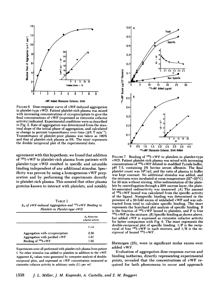 Platelet-type von Willebrand disease (vWD) and pseudo-vWD are two recently described intrinsic platelet defects characterized by enhanced ristocetin-induced agglutination in platelet-rich plasma. A similar finding is also typical of type IIB vWD, where it has been related to a von Willebrand factor (vWF) rather than a platelet abnormality. Platelet aggregation induced by unmodified human vWF in the absence of other stimuli has been reported in pseudo-vWD. In this study we demonstrate that vWF induces aggregation in platelet-type but not type IIB vWD. Aggregation is observed when normal plasma cryoprecipitate or purified vWF are added to platelet-rich plasma. Cryoprecipitate also aggregates washed platelets, although at higher concentrations than required for platelet-rich plasma. Purified vWF, however, induces significant aggregation of washed platelets only when plasma is added. EDTA inhibits vWF-induced aggregation. Its effect can be overcome by calcium but much less effectively by magnesium ions. Unstimulated platelets in platelet-rich plasma from patients with platelet-type but not type IIB vWD bind 125I-vWF in a specific and saturable manner. All different sized multimers of vWF become associated with platelets. Both aggregation and binding exhibit a similar vWF concentration dependence, suggesting that a correlation exists between these two events. Removal of ADP by appropriate consuming systems is without effect upon such binding or upon vWF-induced aggregation. Thrombin-induced 125I-vWF binding to washed platelets is normal in platelet-type as well as type IIB vWD. These results demonstrate that a specific binding site for unmodified human vWF is exposed on unstimulated platelets in platelet-type vWD. The relatively high vWF concentrations required for aggregation and binding may explain the lack of significant in vivo aggregation and thrombocytopenia in these patients. Moreover, these studies provide additional evidence that platelet-type and type IIB vWD are different diseases with distinct pathogeneses.